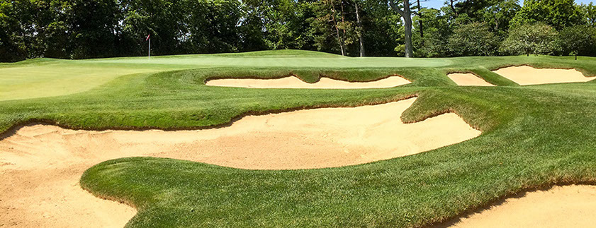 accommodate golfers of varying skill levels. We then reconstructed the existing bunkers utilizing extraordinary creativity. Bunker locations were subsequently adjusted in response to the hyper-advancements in golf equipment technology. Surface and subsurface drainage improvements were included in order to enhance the infrastructure that supports a quality playing condition. Finally a tree management program improved agronomic growing conditions for turfgrass while preserving the “framing” of the original golf hole corridors.